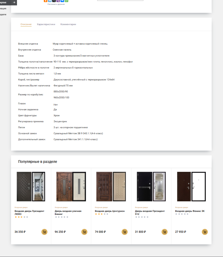 Сайт представляет интернет-магазин с качественно проработанными детальными страницами товаров, на которых выведены основные информация и характеристики товара, приведены технические сведения о продукции.