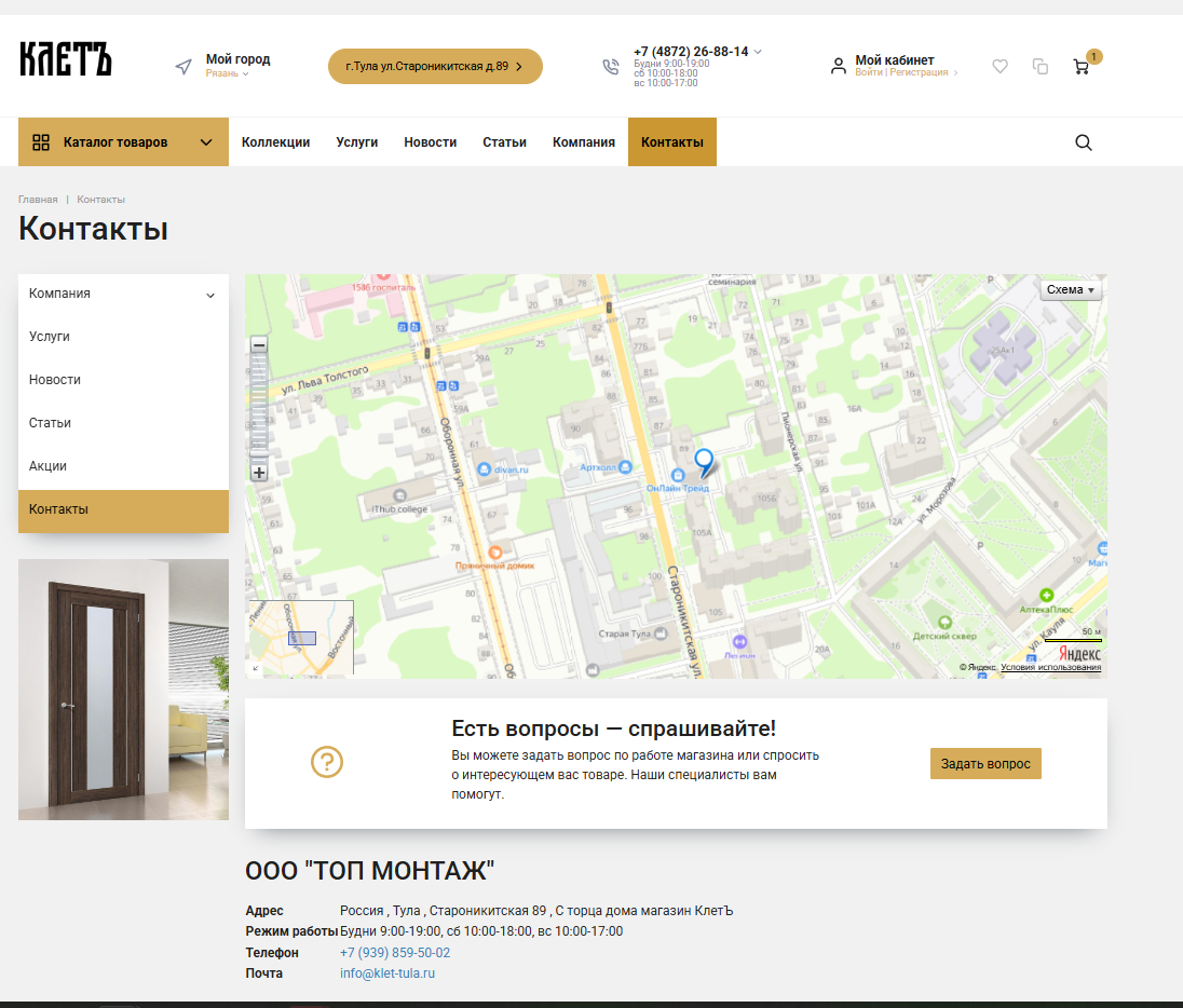 Сайт поддерживает возможность быстрого контакта с менеджерами компании, что обеспечивает высокий уровень обслуживания и минимизирует временные затраты на получение консультаций. KLET-TULA является отличным примером эффективной совместной работы команды разработчиков и заказчика, результатом которой стало создание современного и функционального интернет-ресурса