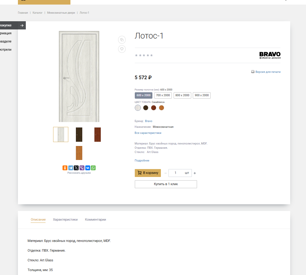 Данный ресурс предназначен для продажи качественных входных и межкомнатных дверей, а также аксессуаров и комплектующих для них. Основная цель портала — предоставление удобной площадки для выбора и приобретения продукции, соответствующей высоким стандартам качества и эстетического восприятия.