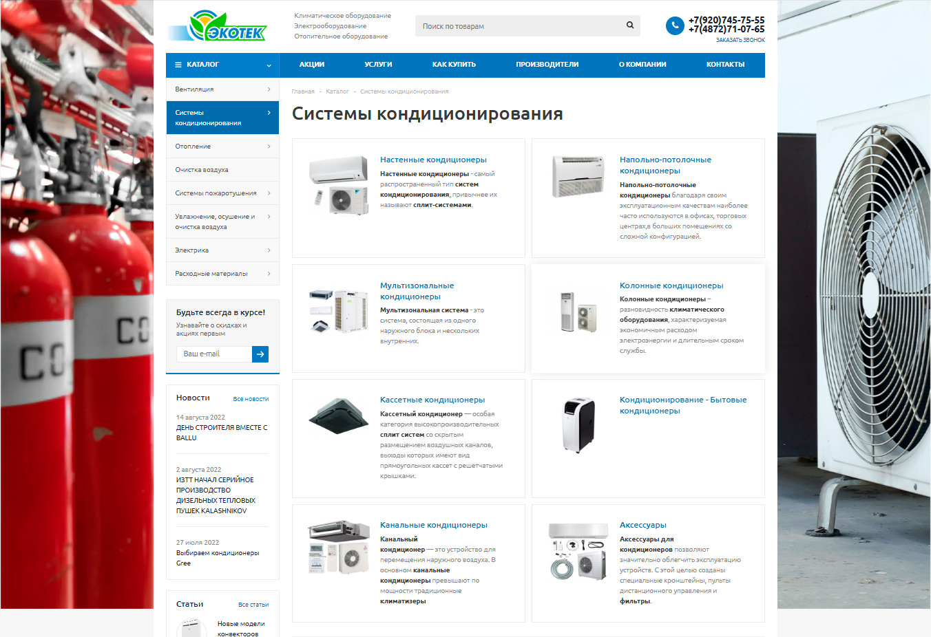 Сайт для компании ООО "Экотек" представляет интернет-магазин с качественно проработанными детальными страницами товаров, на которых выведены основные информация и характеристики товара, приведены технические сведения о продукции.